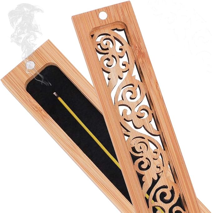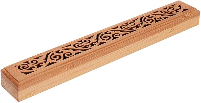 お香立て 横置き香炉 線香炉 線香皿 楠竹製 不燃綿付き 蓋付き 木製 香炉 透かし彫り お香入れスタンド 携帯便利 薫香炉 寝かせる 薫香皿 リラックス 沈静 瞑坐 瞑想 和風古典 茶道 香道 仏壇料亭用 香炉ボックス 唐草柄 | etshop