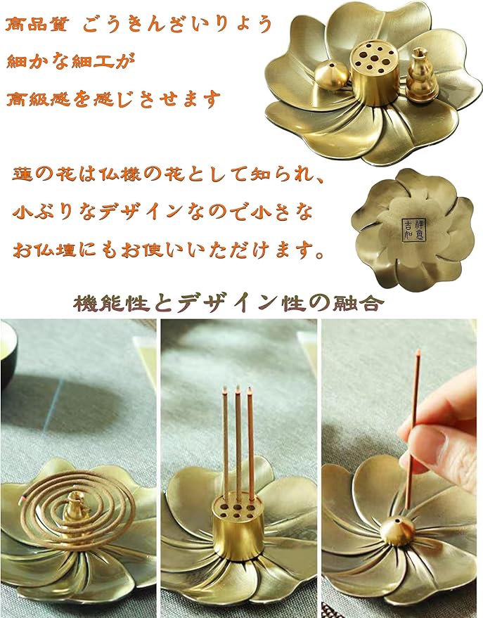 【セット内容】トレー+水滴型+ひょうたん型+多穴汎用蓮型。お香たてが3種類あって、選ぶことができます。 小さな仏壇なので場所をとらないし、灰の受け皿が花の形でオシャレです。