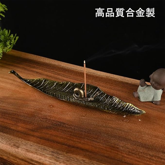 1.【商品仕様】材質:亜鉛合金、菩提樹の葉香皿 1個、カタツムリ香立て 1個、クリーニングブラシ 1本、香皿は長さ21cm 幅4cm 高さ1.6cm、モデル:スモール、カラー:ブロンズグリーン。お香のサイズに対応:外径1.5~2mm、長さ11cm~18cm程度のお香が使用可能ですので、ご購入の際はご確認ください。カタツムリは長さ3.8cm 高さ1.1cmです(短香に合う)、(クリーニングブラシ1本)。
