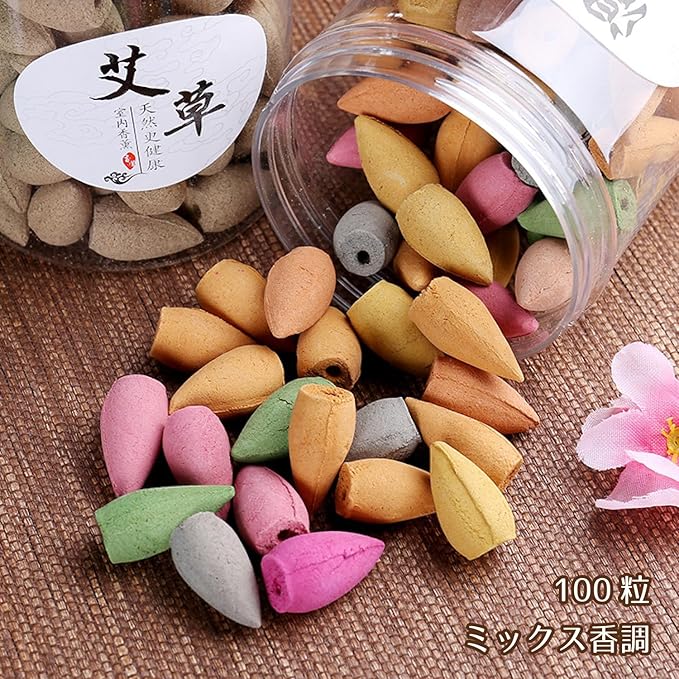 【倒流香・流川香】 中国で流行している倒流香は日本では流川香とも呼ばれ、香の煙が下に落ちていく不思議なお香です。まるで川の流れのように煙が落ちていくのが大きな特徴です。煙の不思議な動きをお楽しみください。専用の香台・香炉でしか煙が流れる現象にはなりません。倒流香専用香炉を使用してください。 【香り・ミックス】9種類の香りの中から100粒をランダムにミックスしてます。気分により香りを変えられるので飽きる事がありません。 【内容量】 100粒入り。1粒の大きさ:1.5 x 2.7cm 【お香効果】 空気を浄化し、心を落ち着かせ、ストレスを軽減し、睡眠の質を向上させるのに役立ちます。リビングルーム、寝室、書斎、オフィス、ヨガスタジオ、ホテル、図書館などで幅広く使用できます。美しいシーンやリラックスした平和な雰囲気を作り出すことができます。