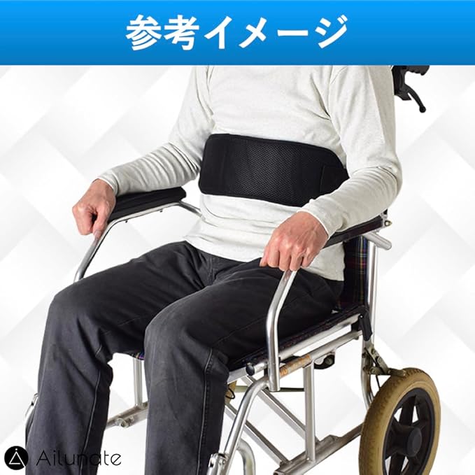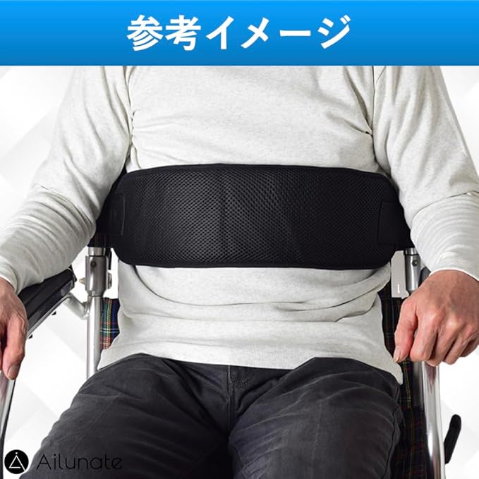 上体を固定することができ、車いすからのずり落ちや落下転落を防げる車椅子ベルトです。