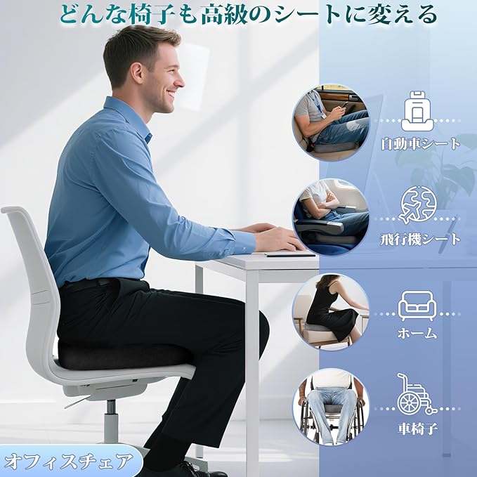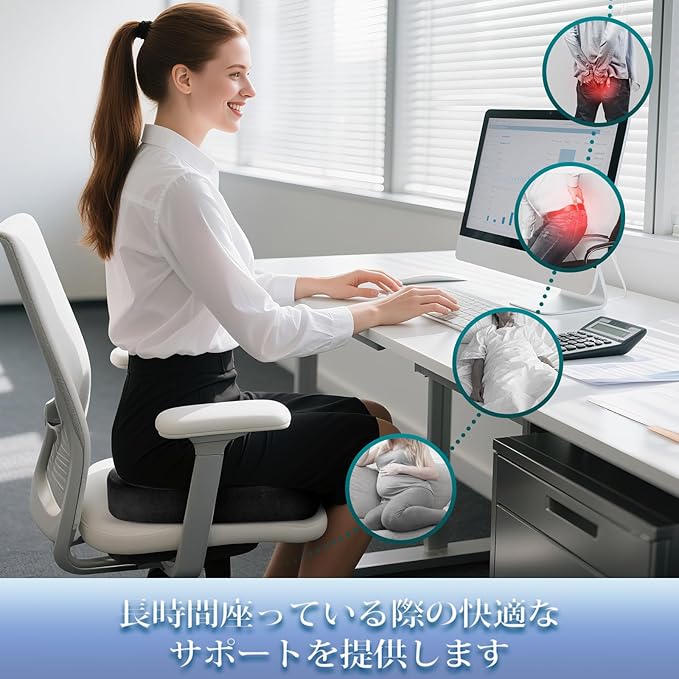 ✔️【圧力分散設計】 Ecosafeterシートクッションは、体型にフィットする高密度メモリーフォーム製で、尾骨部位には独特の凹みが設計されている。U字型デザインは、座る人の体重を適切に分散し、お尻に快適なサポートを提供します。あらゆるオフィスチェアに長時間座るのに最適です。