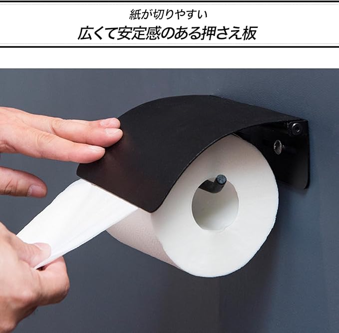 ✅【紙が切りやすい】 広くて安定感のある押さえ板は トイレットペーパーの形に合わせて カーブしているので 紙が切りやすい構造になっています。