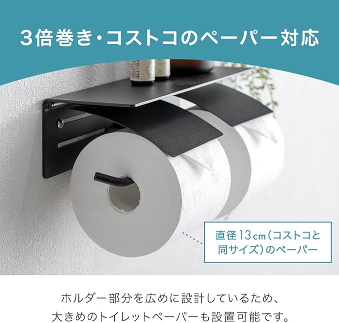 【スタッフのおすすめポイント】 ・静音&片手で切れるトーションばね搭載 ・紙を切りやすいカッター付き ・スマホや小物を置ける天板 ・3倍巻きも設置OK ・スタイリッシュなスチール素材