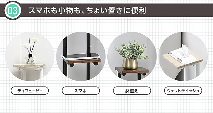 【スマホ置きで便利】天板にスマホのちょい置き、スプレーや芳香剤などの用品を置くに大便利。トイレットペーパーを4個まで収納可能です。収納が少ないトイレでも周りをすっきり整頓できます。