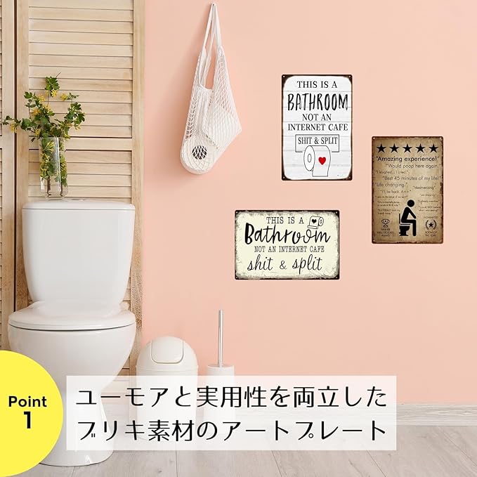 【サイズ・バリエーション】全24種類、サイズは20 30cm(A4相当)。「トイレの使い方」「注意書き」「ユーモア入りの禁止表示」など多彩なデザインを揃えています。ご家庭から店舗まで幅広いシーンで活用できます。