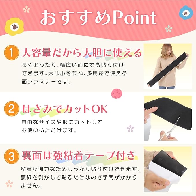 ✅【 自由にカット 】11cmの幅広タイプで、幅、長さ、形をお好きなようにカットしてお使いいただける汎用性の高い面ファスナーです。ハサミで簡単に切ることができます。