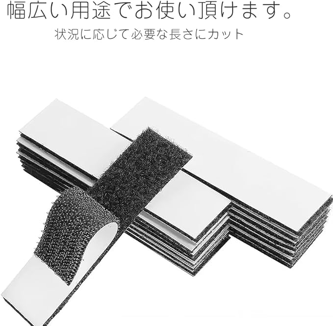 フックの毛足が長くオス側と密度が高いためメス側にフィットして、脱着性や固定性がいいです。 使いやすく安全で、自由自在に着脱できます。耐久性にも優れ、何度も繰り返し使用可能です。車内用カー用品の固定等に幅広く使用できます。