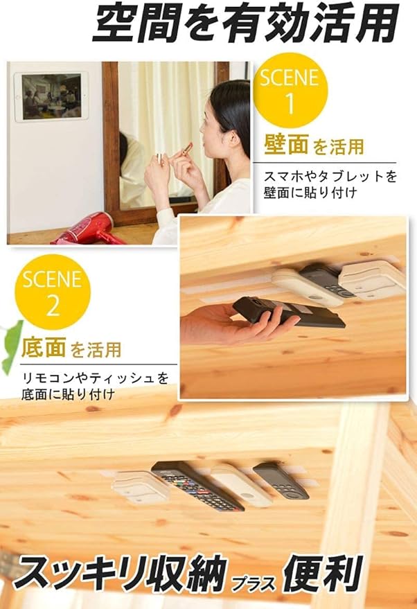キレイにはがせる両面テープ付き:壁やテーブル裏に両面テープを貼り付けても大丈夫!汚れが残らずキレイにはがせる♪