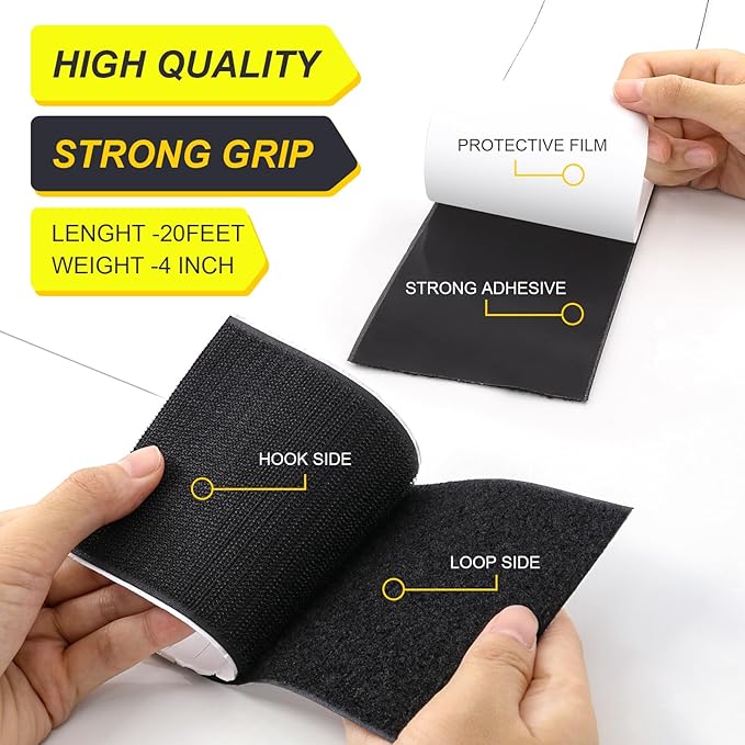 マジックテープ基本仕様:幅: 約10cm、全長: 610cm。カラー: ブラック。超強力で耐久性に優れた素材を使用し、長時間にわたり高い粘着力を保持します。強力な粘着力で、信頼の固定力。