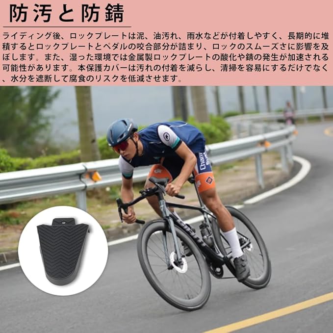 【汚れ防止と保護機能】クリート内部への泥や汚れの蓄積を効果的に防ぎ、金属部分の腐食や摩耗を低減。サイクリングシューズを履いたままの歩行を大幅に快適にし、クリートの寿命を延ばします。