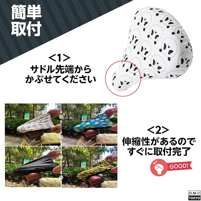 ✅【楽々取付】 まずカバーの先端をサドル前方部分にかぶせ、後方部分を伸ばして装着すれば簡単に取り付けができます