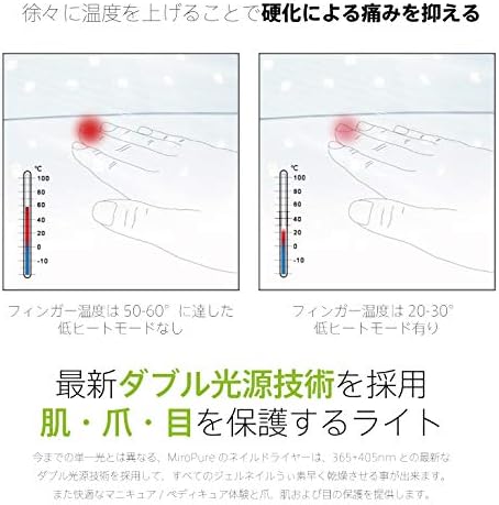 ・自動センサー:手を入れただけでライトが点灯!【UV+LED二重光源】ネイルライトは365+405nmの最新なダブル光源技術を採用して、どんなジェルも、レジン液も、シャキっと硬化します。自宅でもネイルサロンをお手軽に楽しむことができます。ライト点灯時間が選択可能!(10秒・30秒・60秒)さらに、99S低スピートムードが搭載しています。