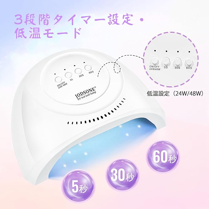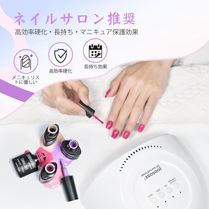 新しいネイルライト: 軽量で広々とした、ベースレスの新しいネイルライトです。LEDジェル、ハードジェルなど、あらゆるジェルを硬化させることができ、ご自宅やサロンに適しています。