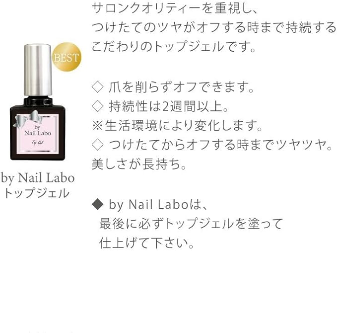 ・by Nail Laboをご使用の際は、最後に必ずトップジェルを塗って仕上げて下さい。