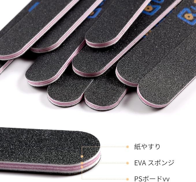 100/180両面爪やすり:ネイルやすり100グリットは粗く、爪からジェルを取り除くのに役立ちます. 木目180側は細心の注意を払っており、爪のエッジをカットして形状を洗練するのに役立ちます.