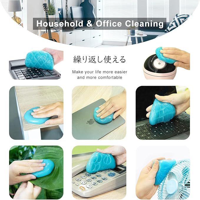 掃除用スライムは柔らかくて、手入れにくいキーボードの隙間や部屋の隅などに入り込み、取りにくいごみとほこりを簡単に取っちゃいます。こちらの粘着クリーナーの粘着力がなくなるまで何度も利用でき、コスパが高いジェルクリーナーでございます