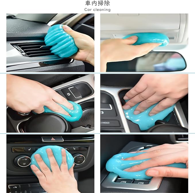 スライムクリーナーはエコ素材で作られ、手にべたつかず、ほのかな香り(ラベンダー)がします。掃除したいところにクリーナースライムをピタッとくっつけてゆっくり剥がすと、ホコリやゴミが楽に取られます。特にキーボードや車内のお掃除などのシーンには大活躍で、人気なスライム掃除用品であり、収納しやすい包装が付き、繰り返し使用でき、扱いもやすいです