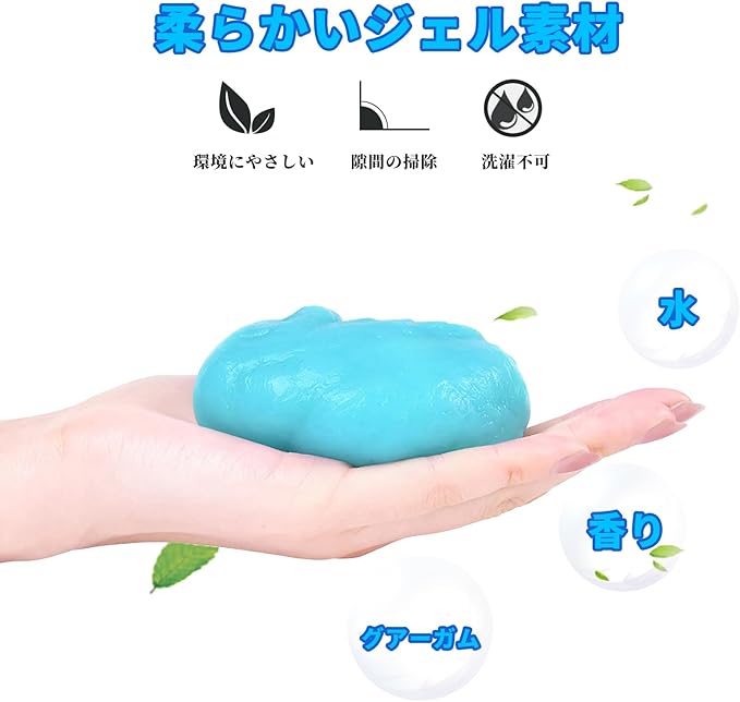 【ハイテククリーニング素材】植物性の柔らかいゴム成分から作られており、無害、無毒で生分解性であり、お手入れも簡単、安心してお使いいただけます。キーボード 掃除用スライムはホコリを吸着しますが、手には付着しません。車内清掃スライムは細かい塵をよく吸着し、細かい掃除には最適です