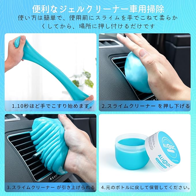 【 革新的な車用清掃用品】ALIOBC スライム型粘着クリーナー は車エアコン・シフトレバー・シート・室内ドアハンドル・ドリンクホルダー・グローブボックなど、車内の手の届きにくい場所を掃除するために設計されています。手にべたつかず、汚れを吸着する隙間クリーナーは、男女兼用の車用品 便利グッズです