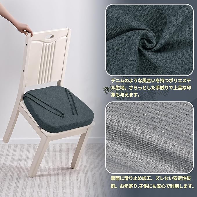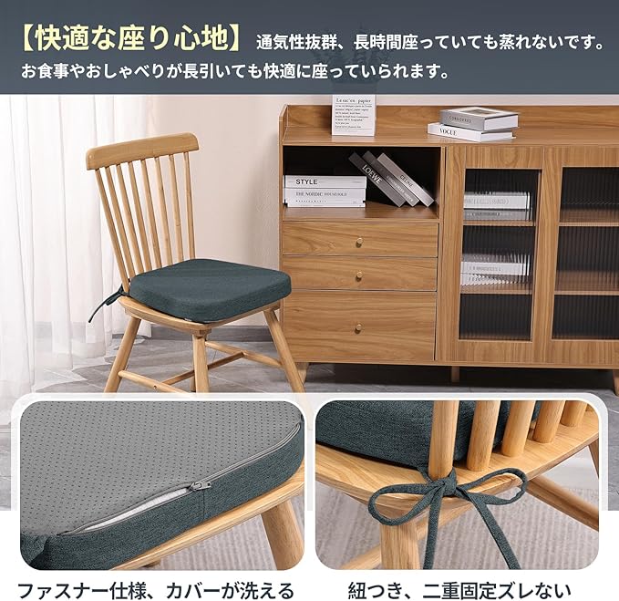 【滑り止め&洗えるカバー】座布団の裏面にシリカゲル粒子付き滑りにくい、さらに紐つき2重固定で安定性抜群です。またファスナー仕様で、カバーを取り外して洗えます。汗をかきやすい夏場に衛生を保って、快適感を提供します