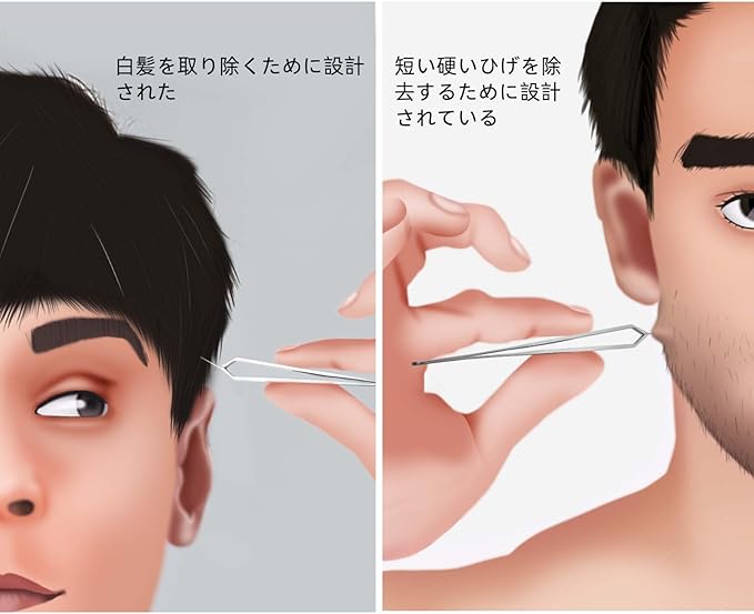 【眉毛、まつげ、その他の不要な髪にも適しています】ひげや白髪を摘むのに加えて、このピンセットは眉毛、まつげ、鼻毛、顔の毛、脇毛、その他の不要な毛のための完璧なグルーミングツール/リムーバーです。 キューティクルニッパーとしても使用できます。