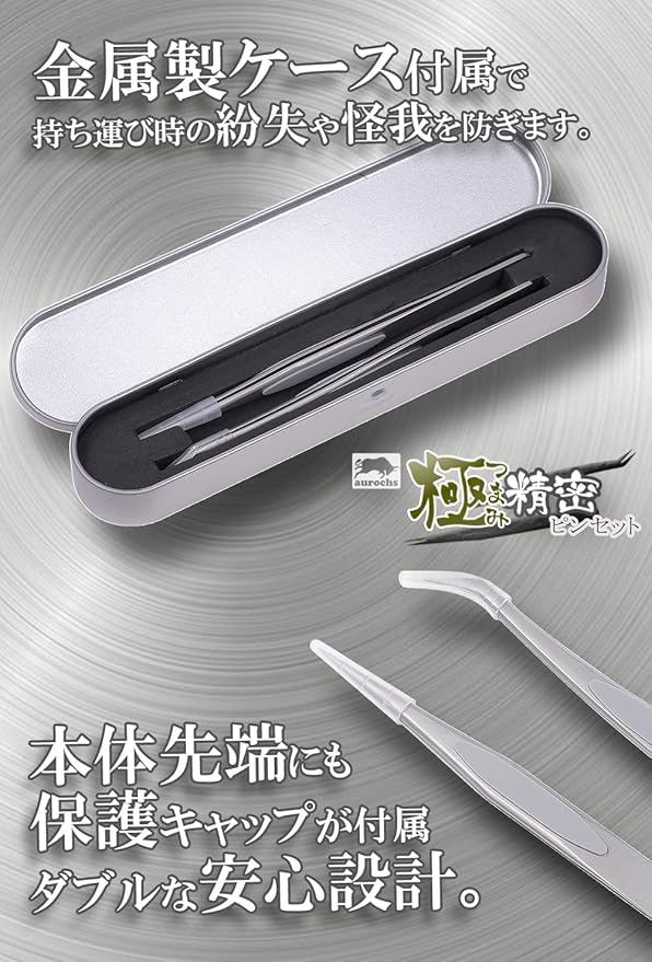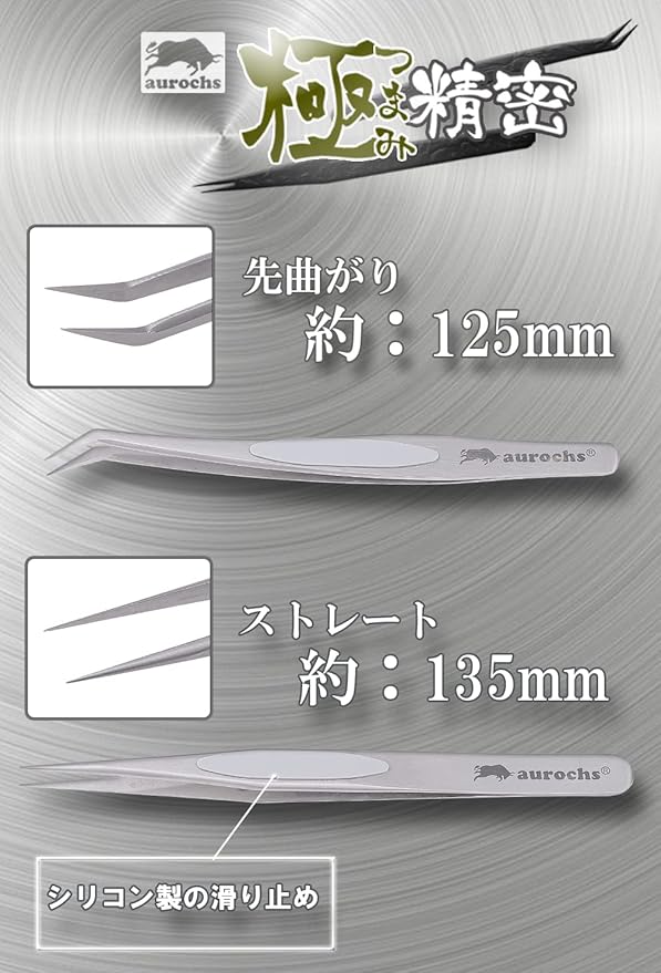 ピンセットの持ち手のシリコンの滑り止めによってホールド性が増しバネ強度も適度に調整されており長時間の作業でも疲れにくく設計されています