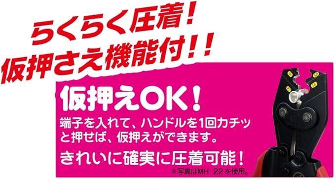 仕様:圧着マーク、軽量、ミニ、端子仮押さえ