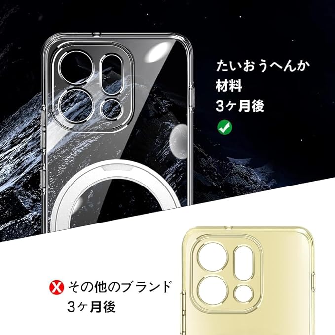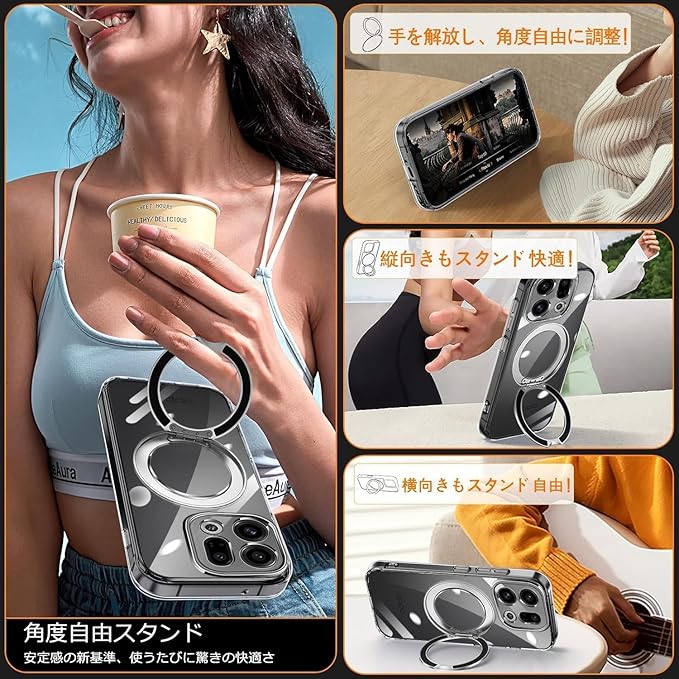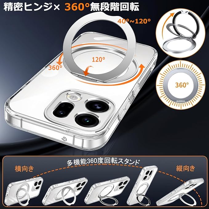 For OPPO Find X9 用 ケース 透明 リング付き マグネット搭載 マグネティック ストラップホール付き オッポ ファインド X9 カバー クリア スマホケース 360 回転可能 TPU スタンド 軽量 薄型 おしゃれ | etshop