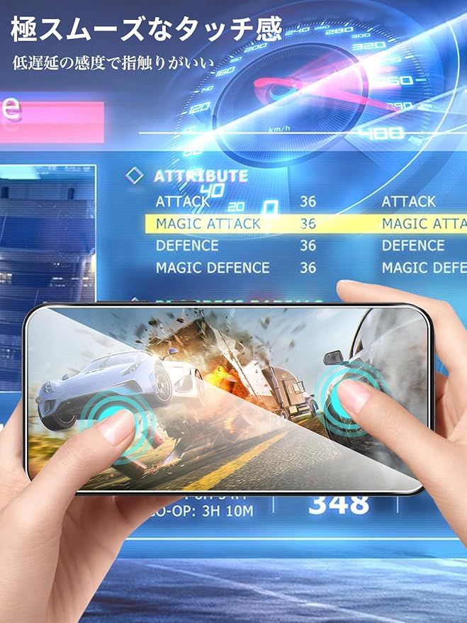 【特殊コーティング加工】保護フィルムは先端コ一ティングにより撥水撥油と指紋防止機能があり、長い時間スマホを使っても液晶画面がスムーズなタッチ感を保てます。手汗・水滴・油汚れなどが付着しにくいですので、爽やかな手触り感ができます。