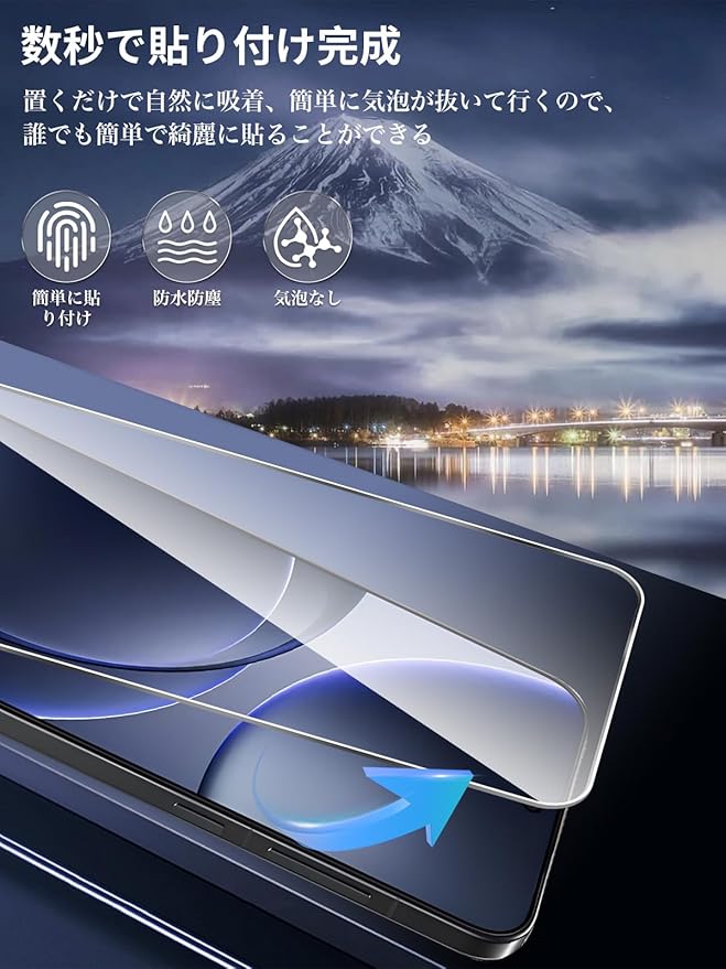【気泡ゼロ】自動吸着機能がある以上、貼り付け手順に従って簡単に貼り付けることができます。気泡があまり入りにくいですが、もし少し気泡が入ってしまったら、力入れて抜けますので、ご心配なく。