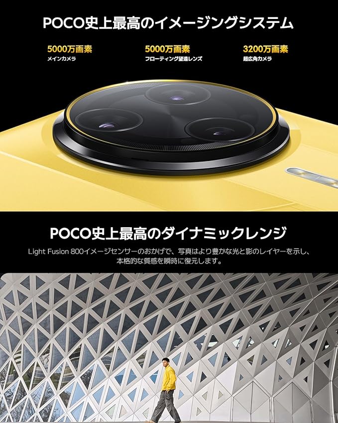 ✅あらゆるシーンに対応する高性能トリプルカメラ:POCOシリーズ史上最高のカメラ性能を搭載。5000万画素のメインカメラは大型のLight Fusion 800イメージセンサーを備え、POCO最高のダイナミックレンジで明暗のコントラストをしっかり捉えます。