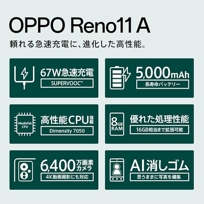 OPPO SIMフリー スマートフォン OPPO Reno11 A 5G スマホ 本体 日本語版 6.7インチ 有機ELディスプレイ 6400万画素 2412 1080 120Hz 67W急速充電 docomo/au/SoftBank/Rakuten Mobile 回線対応 携帯電話 おサイフケータイ ディスプレイ指紋認証 顔認証 8GB RAM 16GB拡張+128GB ROM 2TB拡張可能 | etshop