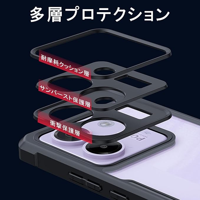 【高品質の材質】背面は厳選したポリカーボネート素材で、側面はSGS認証されたの最高級TPU素材を採用し、着脱が簡単であり、装着の際に本体を傷つける心配もありません。スマホを長時間使用しても光沢感、透明感を保つことができます。