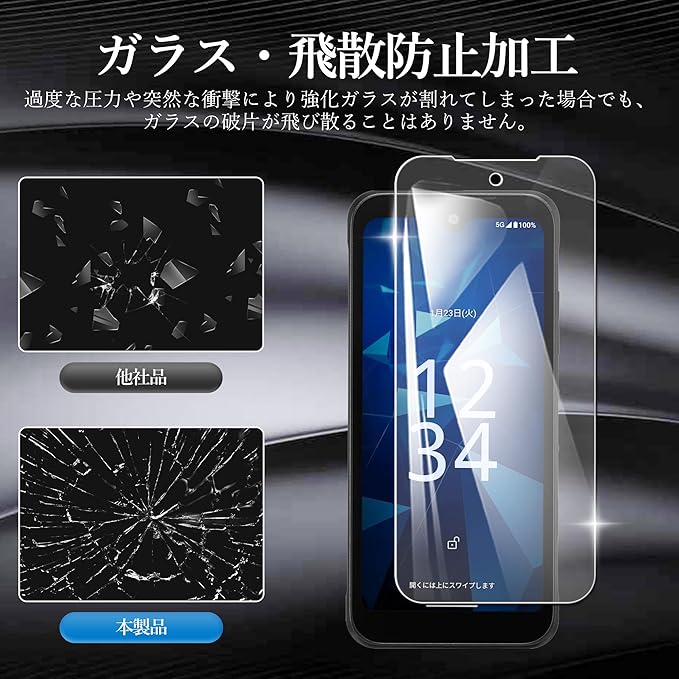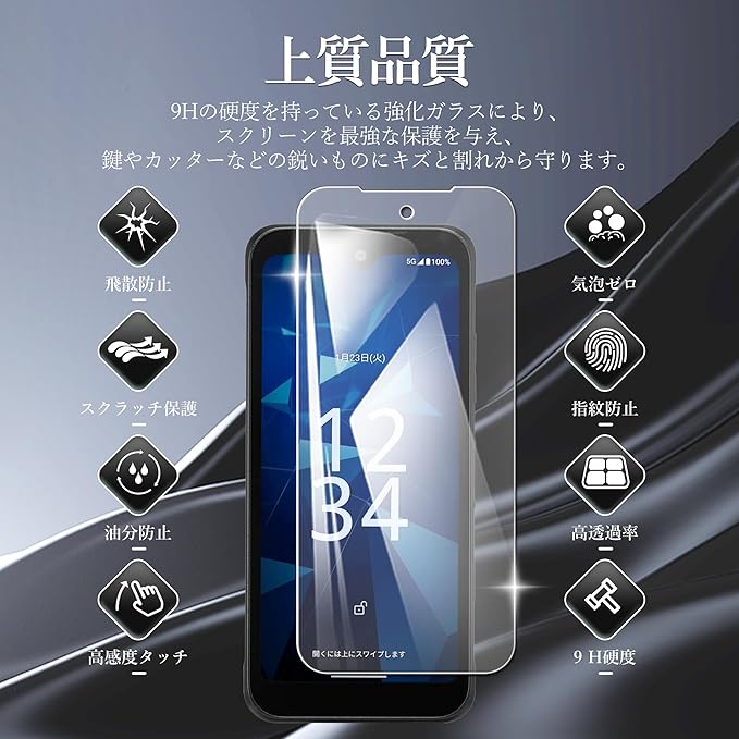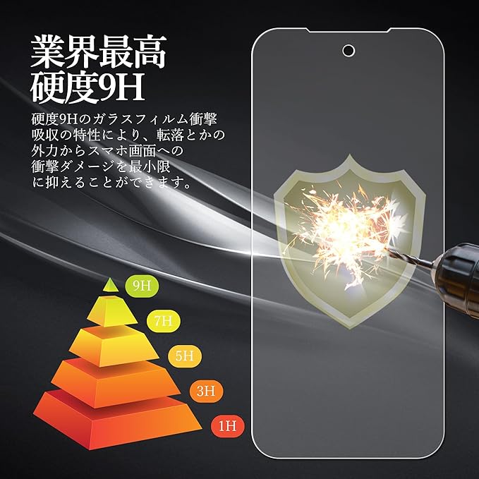 【日本HOT製ガラス採用】:高品質の日本製旭硝子を原材料とし、耐衝撃性と耐傷性に優れています。衝撃吸収の特性により、携帯電話を保護し、転落とかの外力からスマホ画面への衝撃ダメージを最小限に抑えることができます