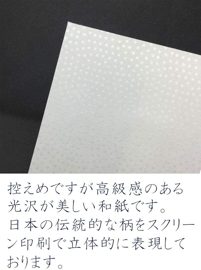 【和紙について】越前和紙に日本の伝統的な柄をスクリーン印刷しています。和紙の厚みは坪量 81.4 g/m2 ございます。しっかりとした質感です。