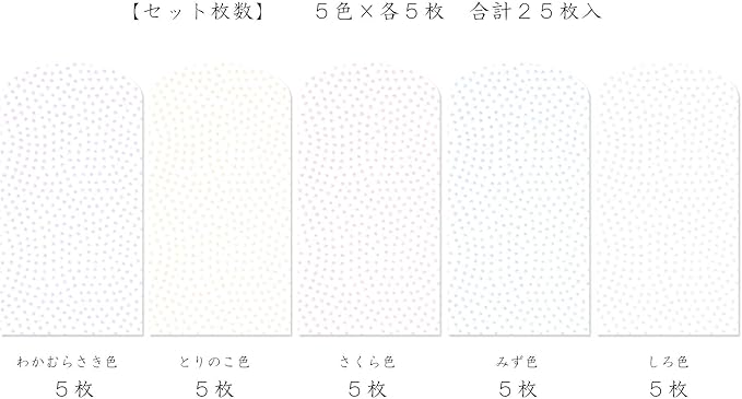 【入数】鮫小紋の柄 しろ、さくら、みず、わかむらさき、とりのこ、の5色調各5枚 合計25枚入