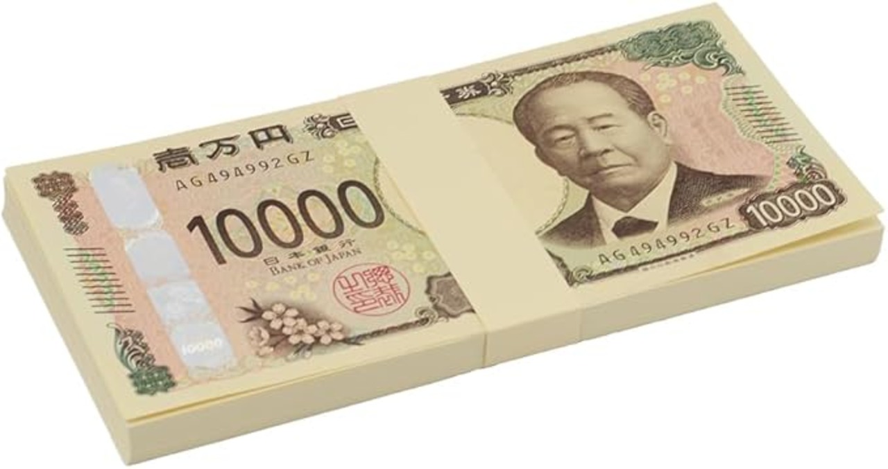 1万円札と同サイズ、似た色の紙を100枚の束にしています。