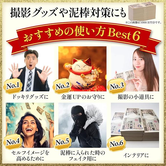 ご自身で本物のお札をご用意頂き、一番上と下にセットしてください。