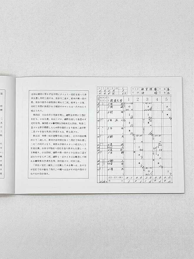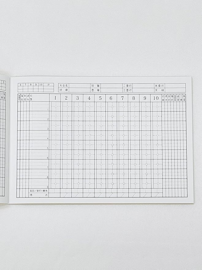 エスオー社・野球スコアブックのなかでも一番小さなB6サイズのモデルになります。 本を開いて左ページに先攻チーム、右ページに後攻チームのプレーを記録していきます。 表紙は柔らかくコンパクトで持ち運びに便利です。 初めてスコアブックをつける方の入門用、また練習用としても選ばれることが多いモデルす。 表紙サイズ・縦 横 13 18.8(cm)