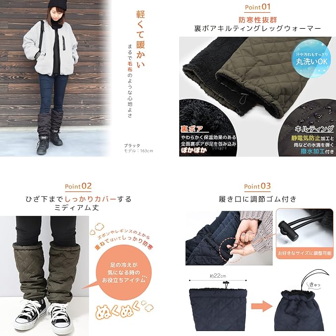 防寒&保温抜群の裏ボアキルティングレッグウォーマー。