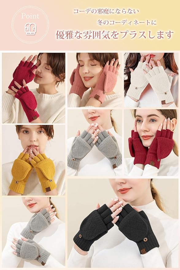[MayCherry] 手袋 レディース 防寒 1秒速熱 便利な2WAY 指なし・ミトン切替 防寒手袋 レディース手袋 防寒グローブ ニットてぶくろ スマホ対応 半指 フード付き 通学 通勤 暖かい 誕生日 クリスマスプレゼント 可愛いグローブ 秋冬 | etshop