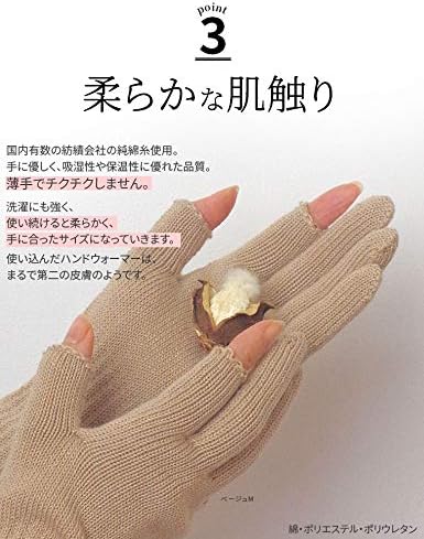 特徴:2つの指だけ開いたハンドウォーマー。親指・人差し指が開いていて、中指・薬指・小指は袋状です。スマホ対応手袋としてもおすすめです。編み目が大きくゆったり感があります。MとLは横幅がほぼ一緒ですが、Mはやや強めの伸縮糸を入れているので、手を入れるとMの方がきつめです。