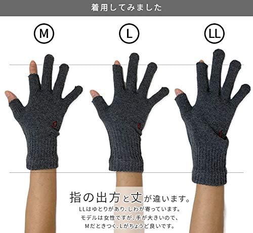 実寸 LL:総丈 27.5、横幅 11.5、親指 3、人差し指 5.5、中指 9、薬指 8、小指 5(手の大きな方用。ゆったり)※いずれのサイズも平置き寸。単位はcm。生産ロット・カラーにより1.5~2センチの差異がございますが、糸が柔らかいので着用するうちに大体同じ大きさに落ち着きます