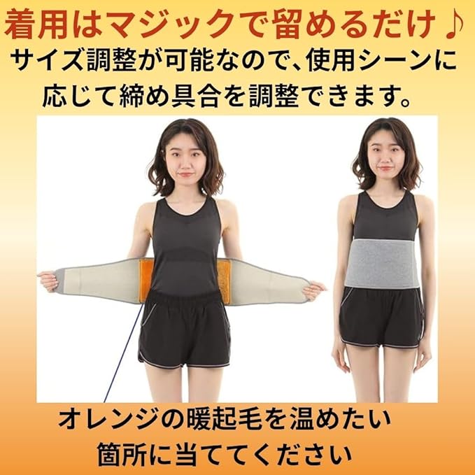 【着脱簡単&サイズ調整可能】 着用はマジックで留めるだけ。体全体を通さなければならない腹巻とは違い手間をかけずに装着できます。サイズ調整が可能なので、使用シーンに応じて締め具合を調整できます。ユニセックスデザインで、男女問わず使用できるため、家族での共有やプレゼントにも最適です。 安心の説明書付き。手洗い洗濯できます。