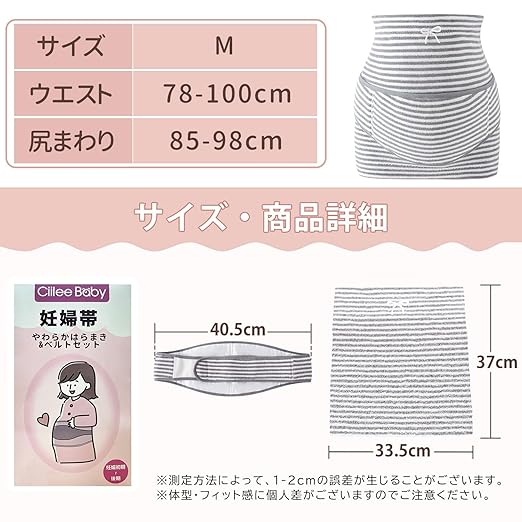 腹帯 妊婦帯 セット マタニティベルト はらまきタイプ 腹巻 産前 お腹保護 体にフィット おなかを支え 天然コットン パイル素材 マタニティ 縞模様 妊娠祝い ギフト グレー Mサイズ | etshop