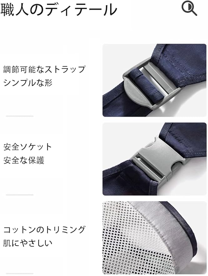 【安全性と信頼性】 赤ちゃんの安全を第一に考えています。 当社のキャリアは厳しい品質検査を受け、国際的な安全基準を満たしています。 キャリアの調節可能な安全バックルにより、赤ちゃんは常に安定した状態で安全に抱っこすることができます。