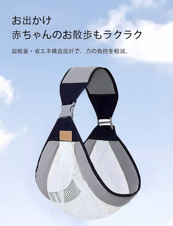 【持ち運びが簡単】当社の新生児用ベビーキャリアは、コンパクトで軽量に設計されており、どこにでも持ち運ぶことができて便利です。 小さく折りたたんでバッグやスーツケースに入れられるので、場所を取りません。 ご自宅でも、公園でも、旅行先でも、簡単にお使いいただけます。