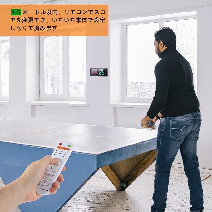 「リモコン付き」リモコンで採点して、いちいち手動で採点しなくて済みます。 本体の4.5メートル内ではリモコンで操作できますが、超える場合では不敏感で採点できないかもしれませんので、ご注意ください。