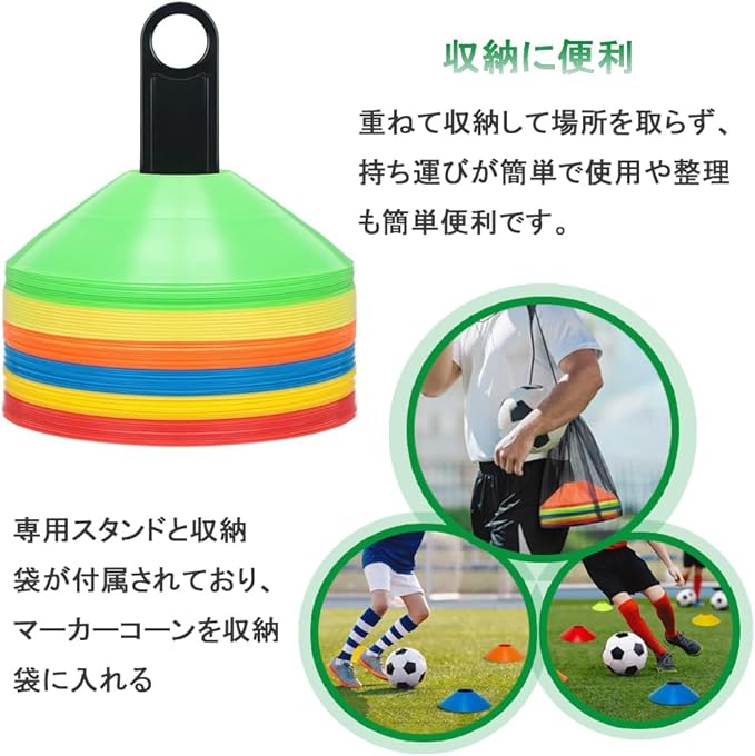 ★【収納に便利】専用スタンドと収納袋が付属されており、マーカーコーンを収納袋に入れる、重ねて収納して場所を取らず、持ち運びが簡単で使用や整理も簡単便利です。